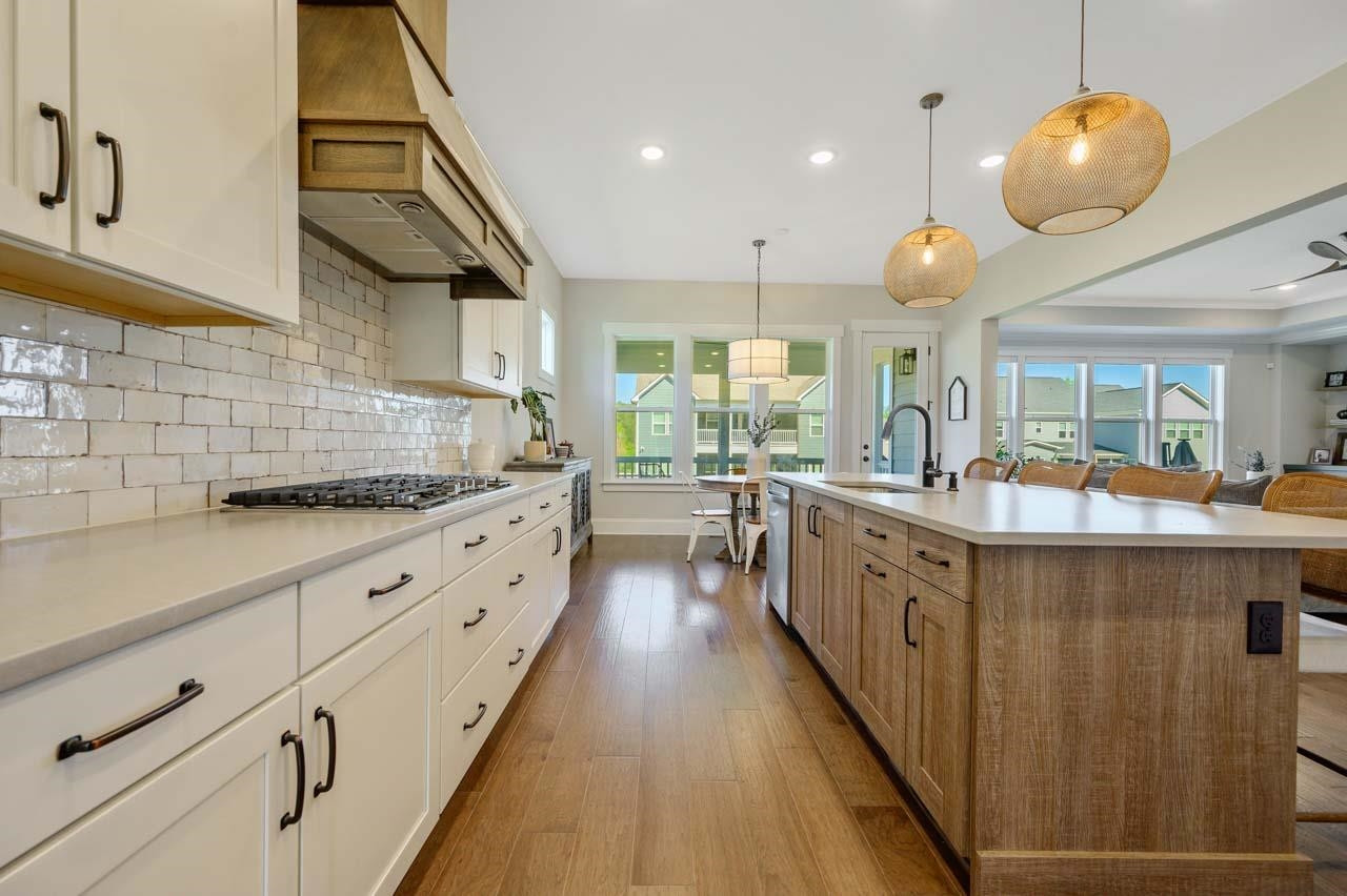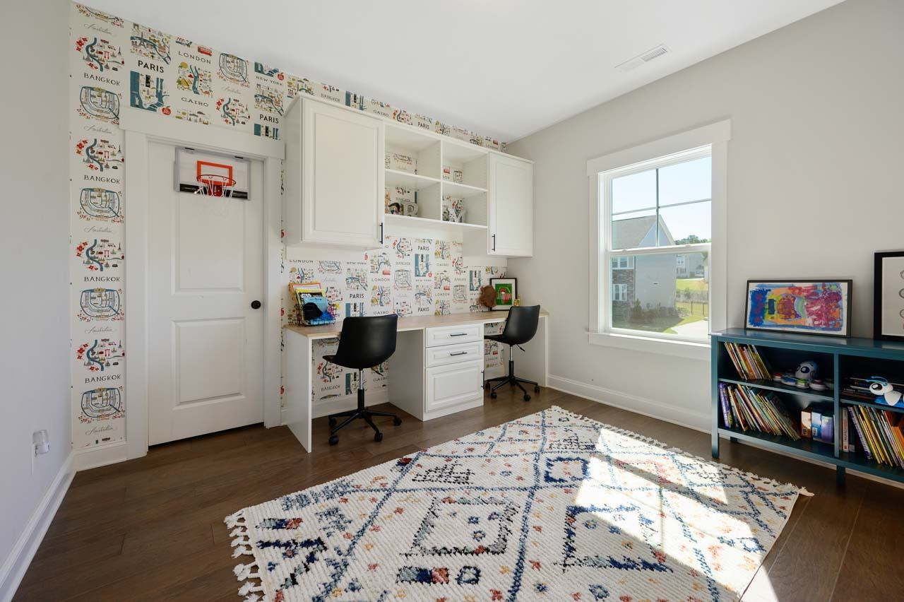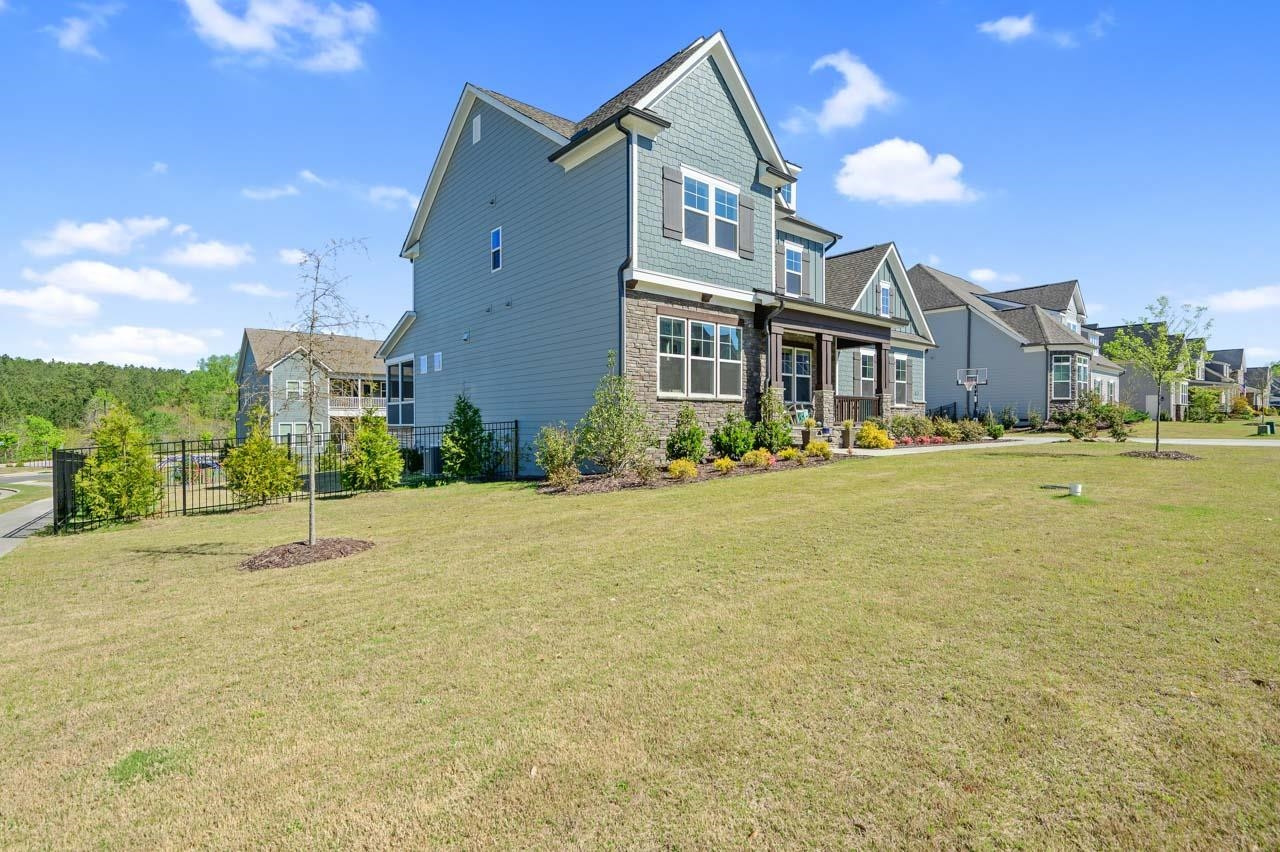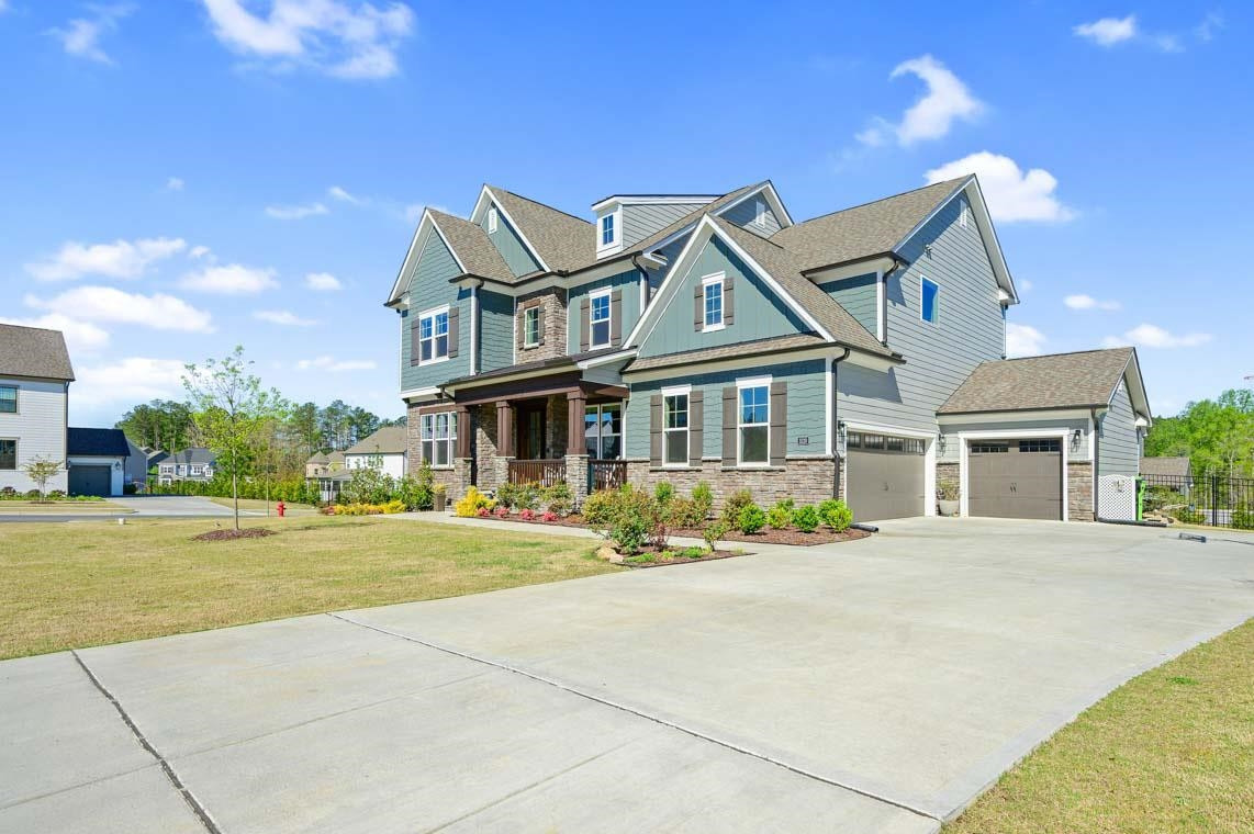 Semi custom two year old home in highly sought after Lake Castleberry. This home includes 4 bdrms, 3.5 baths, three car garage, screened in back porch plus custom outdoor hardscape with firepit. Guest en-suite and office on first floor. Additional bedrooms upstairs along with a bonus room and loft with built in workspace. Engineered hardwood throughout. Amenities include pool, clubhouse and playground. Tons of upgrades and design details throughout. Close to ATT and Greenway.