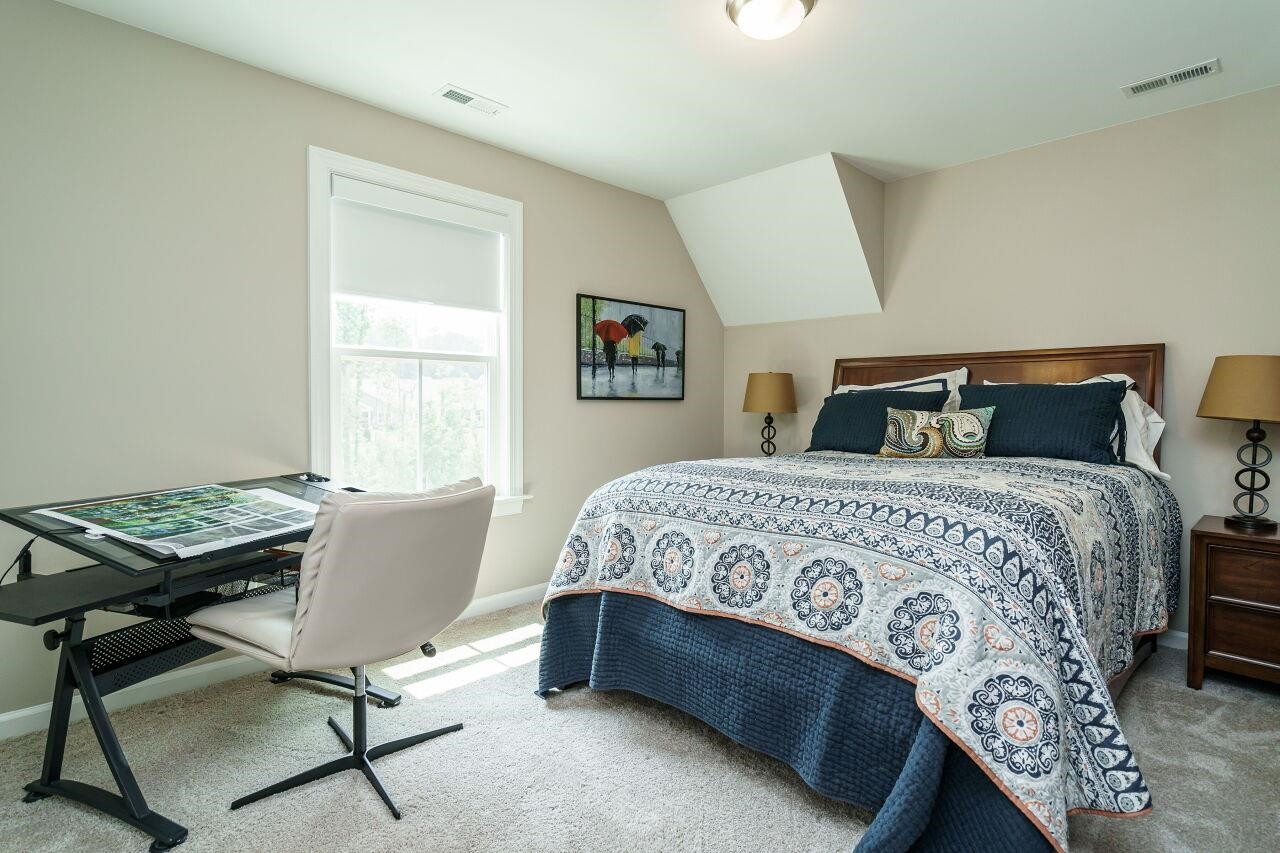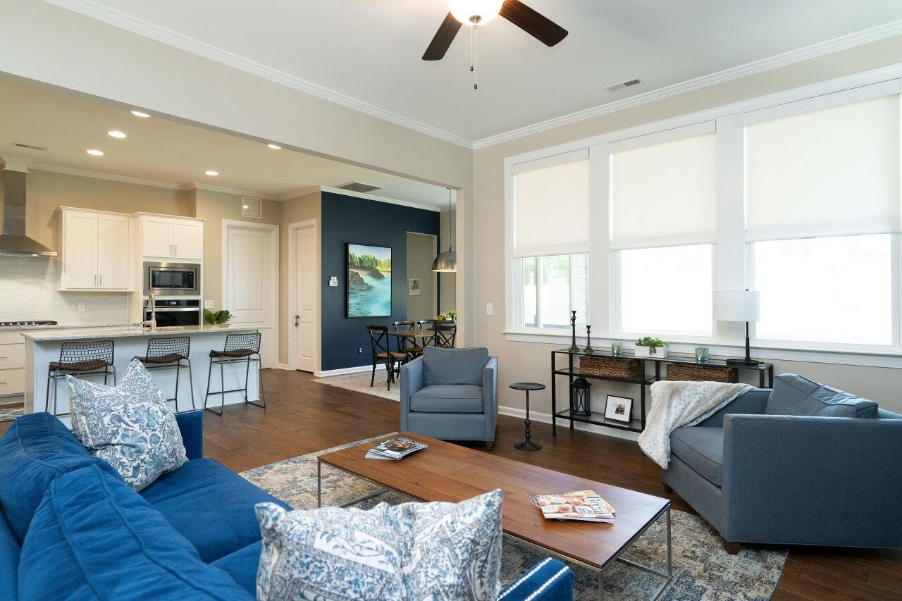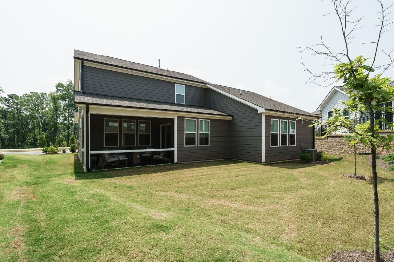 Luxury, move-in ready home, with plenty of upgrades in a 55+ active community. Enter to a lovely foyer with open floor plan living/kitchen/dining areas. Gourmet kitchen with an oversized vent hood, gas cooktop, wall oven, built in microwave, drawers for pots and pans, large center island. First floor has a Primary suite plus an additional bedroom and full bath. Primary bath has an oversized walk-in shower with tiled bench. Walk-in closet with upgraded custom shelving and drawers. Washer and dryer located in mud room when entering from the 2-car garage. Upgraded power blinds on first floor sliding doors in the living area. Off of dining room, walk out to a screened in porch with teak wood interlocking deck tiles. Second level boasts large open bonus room with upgraded feature wall, a bedroom and full bath, plus an additional 200+ SF of unfinished storage space that could be finished and used as another bedroom. Ten-year structural warranty still in effect.