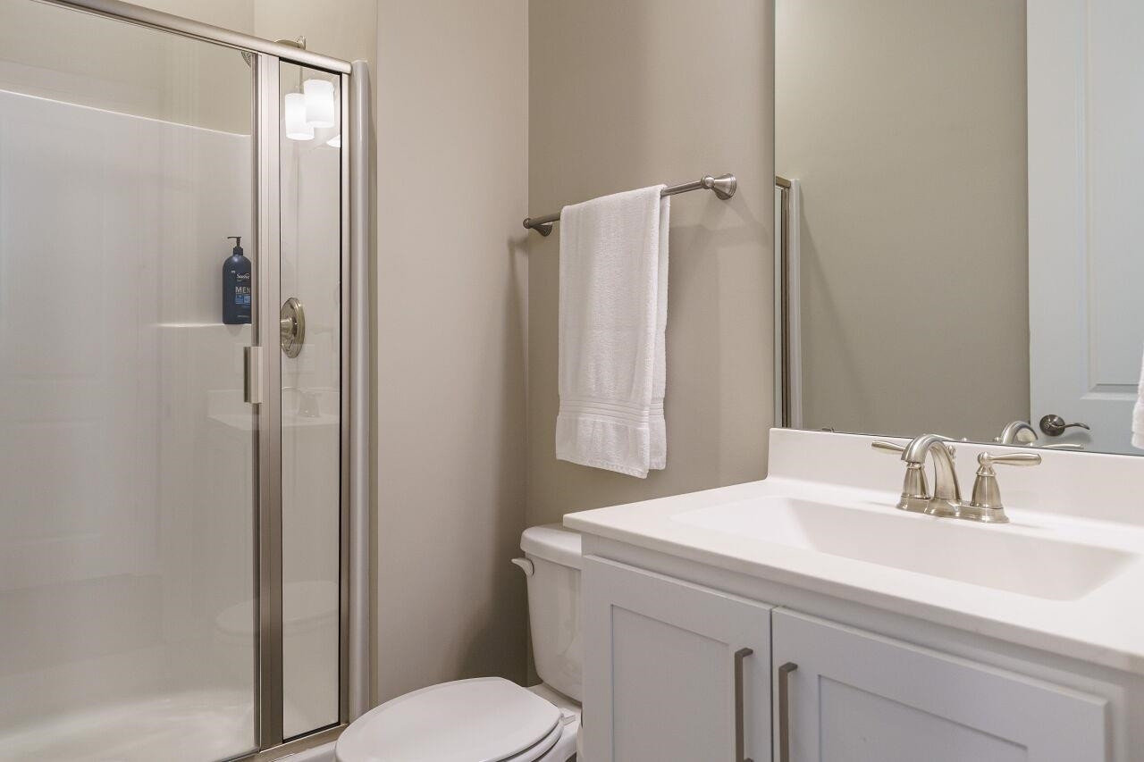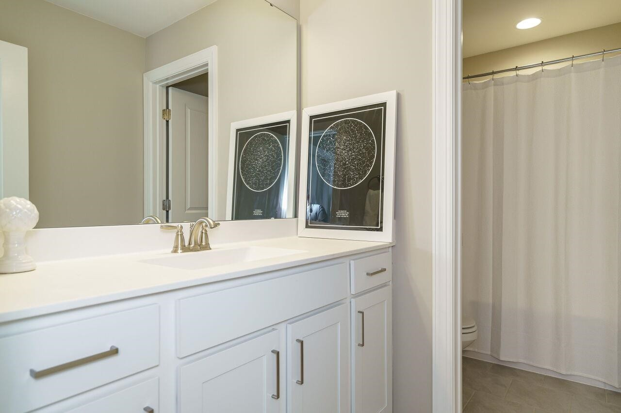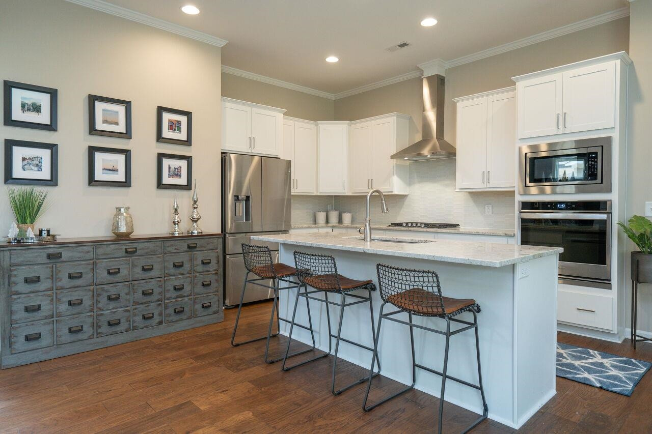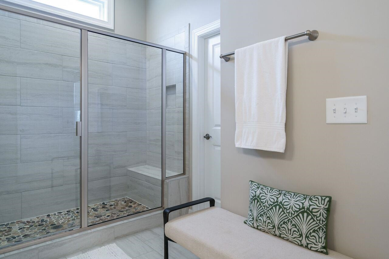 Luxury, move-in ready home, with plenty of upgrades in a 55+ active community. Enter to a lovely foyer with open floor plan living/kitchen/dining areas. Gourmet kitchen with an oversized vent hood, gas cooktop, wall oven, built in microwave, drawers for pots and pans, large center island. First floor has a Primary suite plus an additional bedroom and full bath. Primary bath has an oversized walk-in shower with tiled bench. Walk-in closet with upgraded custom shelving and drawers. Washer and dryer located in mud room when entering from the 2-car garage. Upgraded power blinds on first floor sliding doors in the living area. Off of dining room, walk out to a screened in porch with teak wood interlocking deck tiles. Second level boasts large open bonus room with upgraded feature wall, a bedroom and full bath, plus an additional 200+ SF of unfinished storage space that could be finished and used as another bedroom. Ten-year structural warranty still in effect.